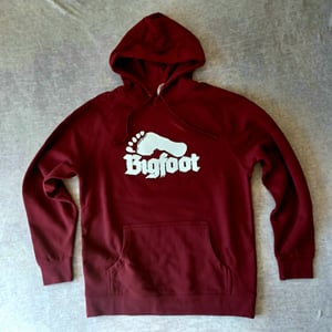 Bigfoot Hoodie. White on Maroon $75.00 / Sold Out