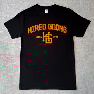 "HIRED GOONS" O.G. Tag Shirt. White on Black. $59.00